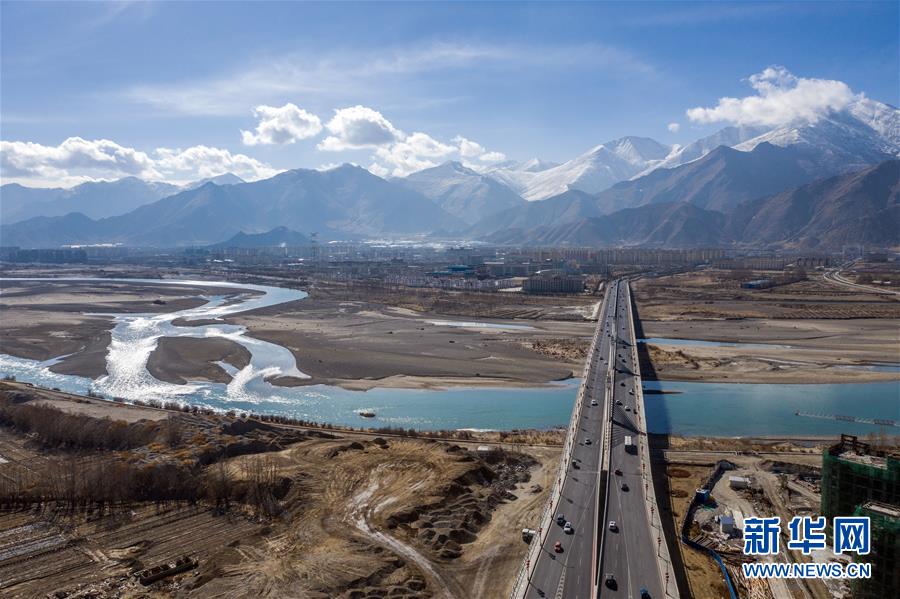 鳥瞰拉薩納金大橋(4月3日無人機拍攝)。新華社記者 晉美多吉 攝