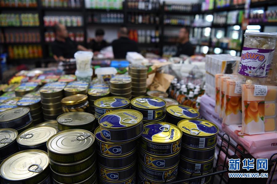 這是9月4日在新疆塔城地區(qū)巴克圖口岸的絲路文化商品城內(nèi)拍攝的進(jìn)口產(chǎn)品。 新華社記者沙達(dá)提攝
