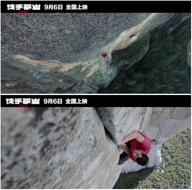 組圖為徒手攀巖預告視頻截圖。