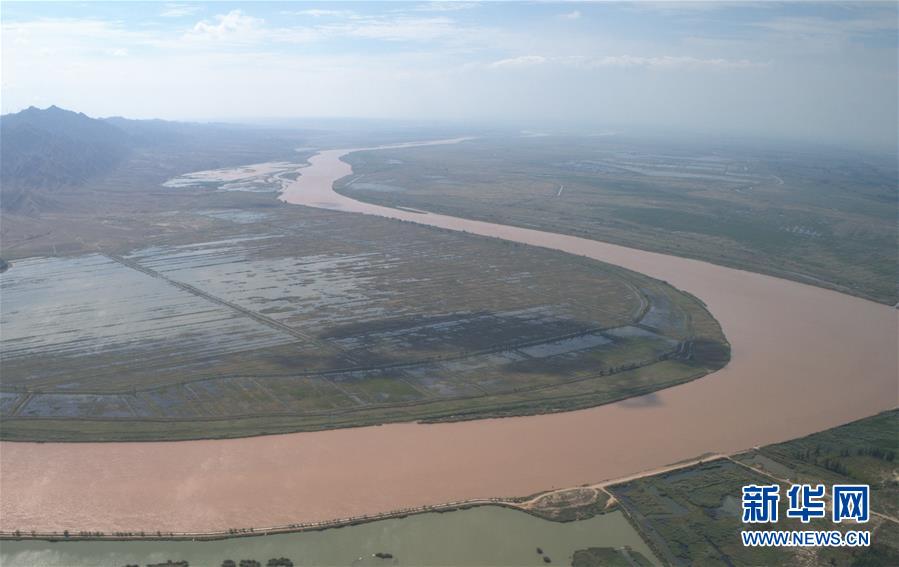 青銅峽市境內(nèi)的黃河(9月3日無人機(jī)拍攝)。新華社記者劉詩平攝