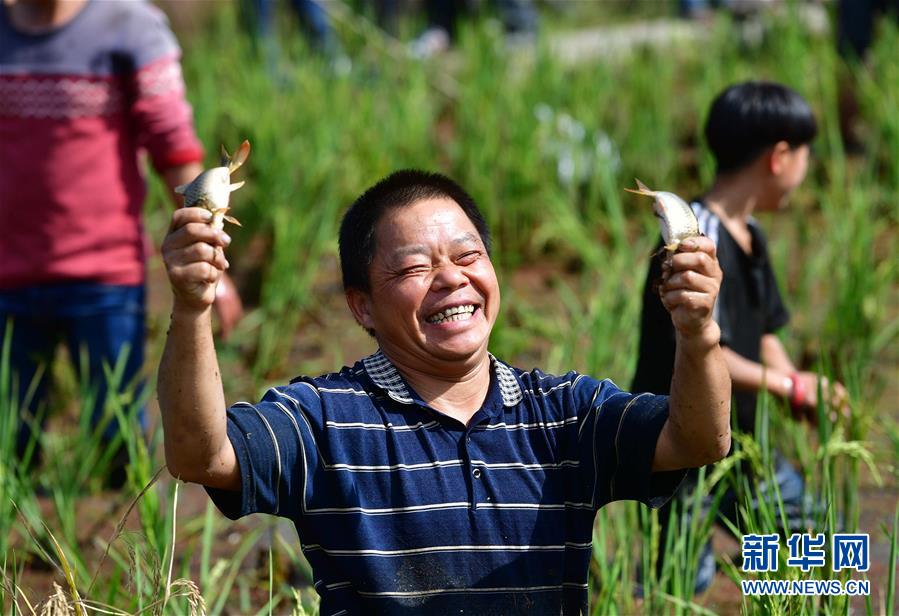 10月28日,在廣西融水苗族自治縣拱洞鄉(xiāng)龍令村,村民參加抓魚比賽。當(dāng)日,廣西融水苗族自治縣拱洞鄉(xiāng)舉辦香糯泉水螺美食文化節(jié),苗族、侗族、瑤族、壯族等各民族同胞歡聚一堂,通過摸螺抓魚比賽、田螺姑娘評選、跳蘆笙踩堂舞、品香螺百家宴等豐富多彩的活動,慶祝金秋豐收。近年來,拱洞鄉(xiāng)依托生態(tài)資源優(yōu)勢,大力發(fā)展香糯種植、田螺養(yǎng)殖等特色產(chǎn)業(yè)。全鄉(xiāng)的田螺養(yǎng)殖面積4000多畝,成立4家田螺產(chǎn)業(yè)專業(yè)合作社,帶動2000多農(nóng)戶參與到田螺養(yǎng)殖。目前,田螺養(yǎng)殖已成為當(dāng)?shù)刎毨裘撠氈赂坏闹匾a(chǎn)業(yè)。新華社記者 黃孝邦 攝