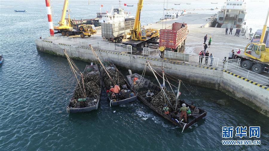 9月23日,滿載牡蠣的漁船返回碼頭(無人機(jī)拍攝)。新華社記者龍雷攝