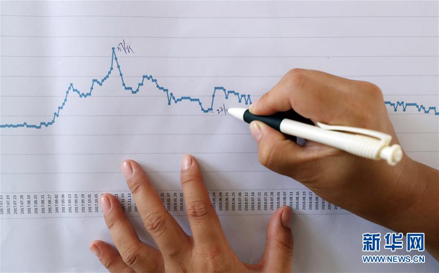 郭旗根據(jù)多年銷售情況,繪制了多寶魚(yú)的銷售價(jià)格變化圖(9月5日攝)。 新華社記者 楊青 攝