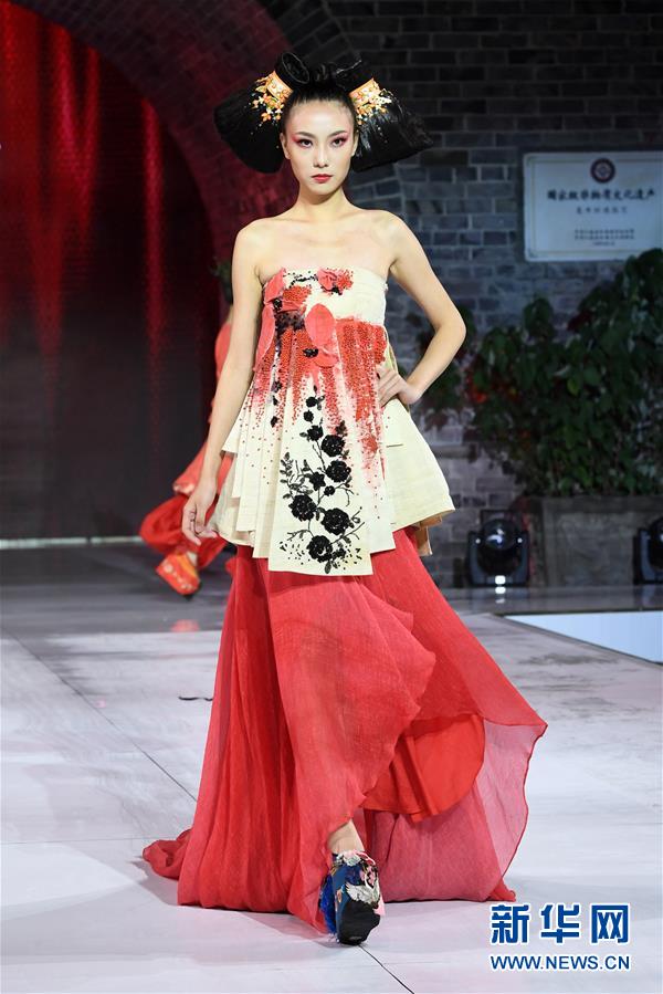 9月25日,模特在榮昌夏布·張義超非遺時尚大秀上展示時裝設(shè)計(jì)師張義超的時裝作品。 新華社記者 唐奕 攝