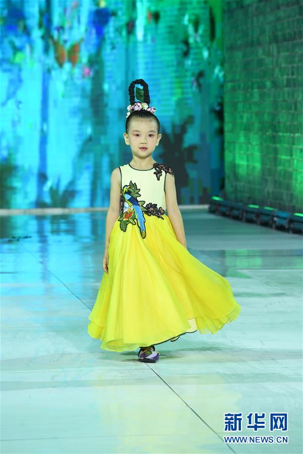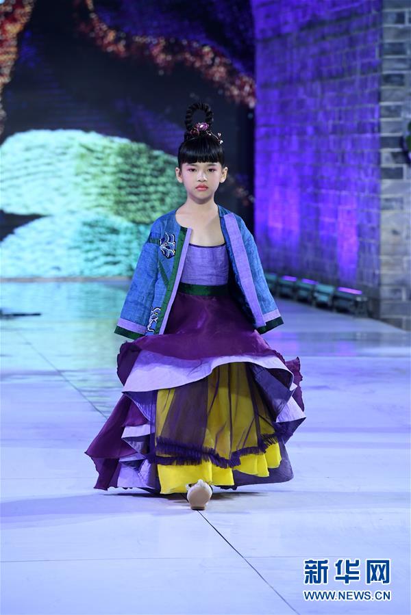 9月25日,小模特在榮昌夏布·張義超非遺時尚大秀上展示時裝設(shè)計(jì)師張義超的時裝作品。 新華社記者 唐奕 攝