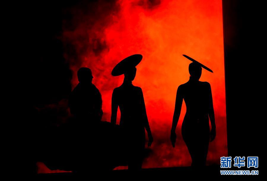 9月26日,在新西蘭首都惠靈頓舉行的世界可穿著藝術(shù)大賽年度秀場(chǎng)表演中,模特展示入圍作品。新華社記者郭磊攝