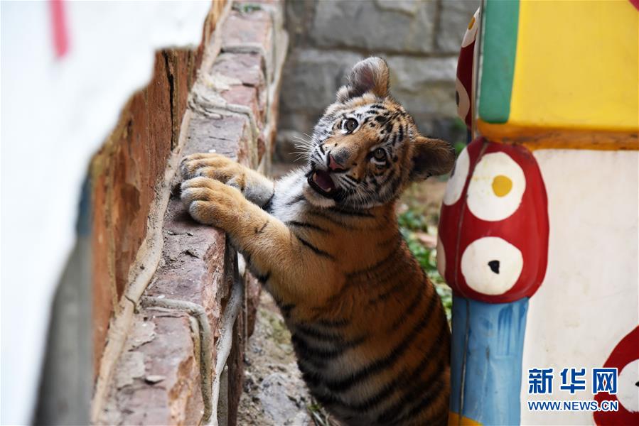 9月26日,孟加拉虎寶寶“小七”在自己的小窩里“玩耍”。 山東濟(jì)南動(dòng)物園的孟加拉虎寶寶“小七”只有3個(gè)月大,由于虎媽媽奶水不足,“小七”一出生便由動(dòng)物園工作人員按科學(xué)方法人工飼養(yǎng)。目前,在飼養(yǎng)員的精心照料下,“小七”在自己的小窩里茁壯成長(zhǎng)。 新華社記者 王凱 攝