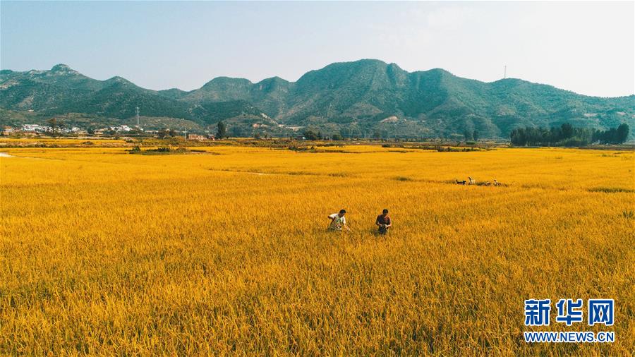 這是9月30日無人機(jī)拍攝的河北省涉縣白芟村的稻田。 近日,位于太行山下的河北省涉縣白芟村上千畝水稻逐漸成熟。從空中俯瞰,猶如一塊塊“調(diào)色盤”,美不勝收。 新華社記者 王曉 攝