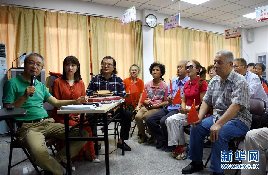 10月1日,在天津市和平區(qū)昆明路社區(qū)黨群服務(wù)中心,天津“心目影院”創(chuàng)始人鄭偉(左一)和兩位講解員在為視障人士“直播”慶祝中華人民共和國(guó)成立70周年大會(huì)的盛況。當(dāng)日是國(guó)慶節(jié),全國(guó)各地的人們用各種方式歡度節(jié)日。新華社記者 宋瑞 攝
