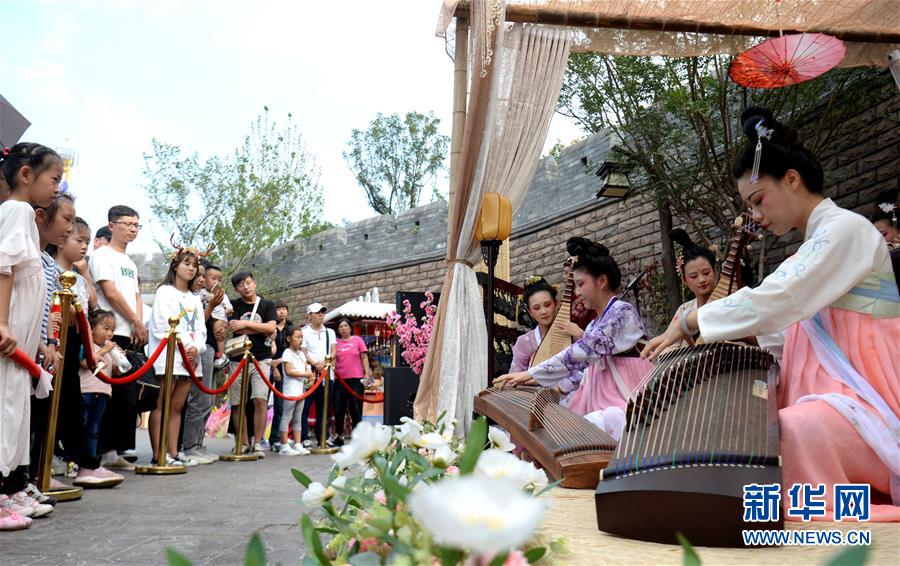10月3日,在河北邯鄲市磁縣方特主題公園內(nèi),游客在練習(xí)書法。 當(dāng)日是國(guó)慶假期第三天,人們紛紛走出家門,樂(lè)享假期。 新華社記者 王曉 攝