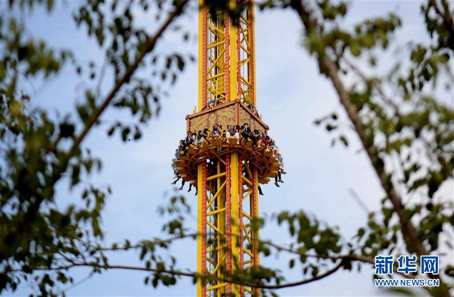 10月3日,游客在河北邯鄲市磁縣方特主題公園內(nèi)游玩。 當(dāng)日是國(guó)慶假期第三天,人們紛紛走出家門,樂(lè)享假期。 新華社記者 王曉 攝