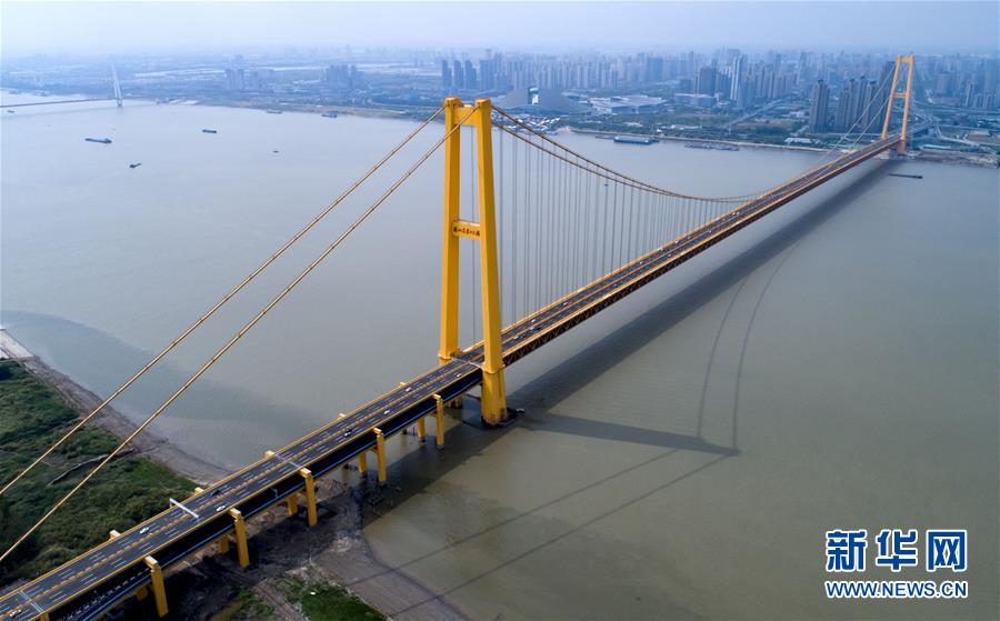 10月8日,武漢楊泗港長江大橋正式通車(無人機拍攝)。當日,長江上首座雙層公路大橋——武漢楊泗港長江大橋正式投入使用。楊泗港長江大橋全長4.13公里,主跨1700米,一跨過長江。大橋上層為城市快速路,雙向6車道,設計行車時速80公里;下層為城市主干道,雙向6車道,設計行車時速60公里。新華社記者熊琦攝