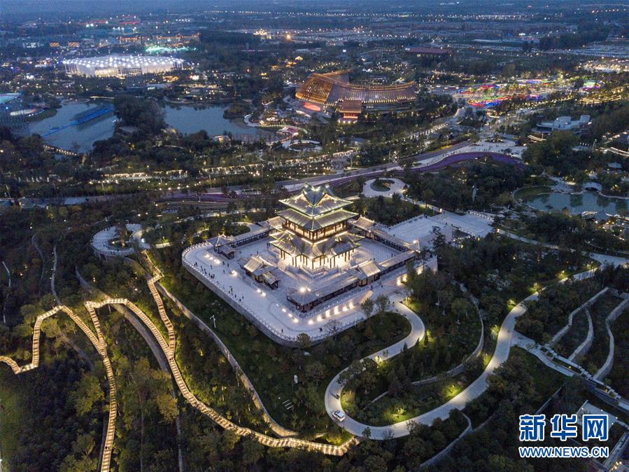 北京世園會園區(qū)內(nèi)的永寧閣(10月6日無人機拍攝)。新華社記者才揚攝