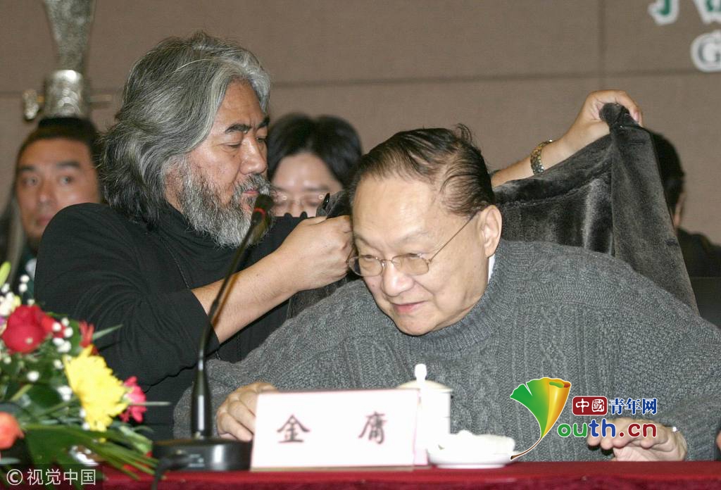 2005年1月10日,《神雕俠侶》劇組正式在第三個(gè)拍攝地—寧波象山開(kāi)機(jī)。金庸與導(dǎo)演張紀(jì)中。