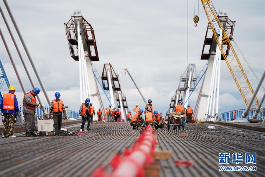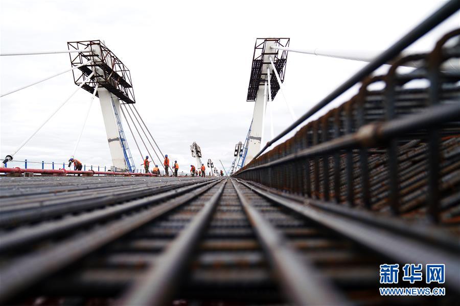 目前,中俄合建的首座跨境公路大橋——黑河到布拉戈維申斯克黑龍江(阿穆?tīng)柡樱┐髽蜻M(jìn)入橋面鋪裝施工作業(yè)階段。大橋于今年5月31日順利合龍,目前中方每天有約200名工人進(jìn)行混凝土澆鑄橋面作業(yè),預(yù)計(jì)橋面施工將持續(xù)到9月上旬。大橋全長(zhǎng)1284米,建成后將形成一條新的國(guó)際公路通道,實(shí)現(xiàn)中俄地方城市之間互聯(lián)互通。