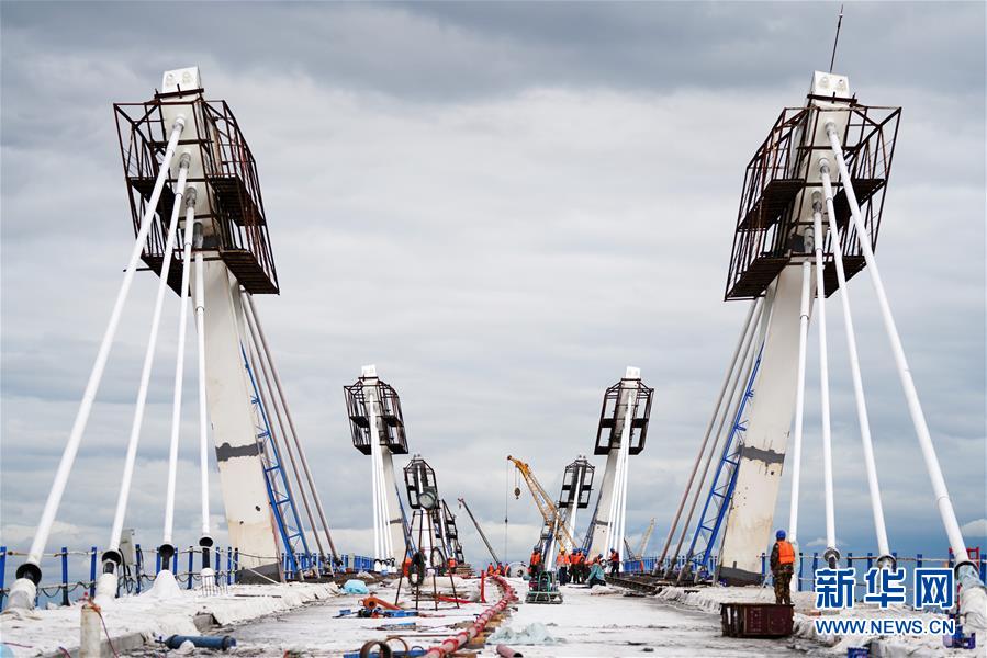 工人在大橋上進(jìn)行橋面鋪裝施工作業(yè)(8月19日攝)。新華社記者 王建威 攝