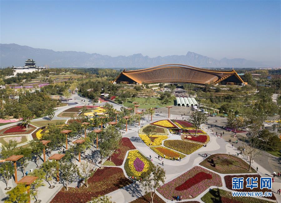 這是北京世園會(huì)園區(qū)一角(10月7日無人機(jī)拍攝)。新華社記者鞠煥宗攝