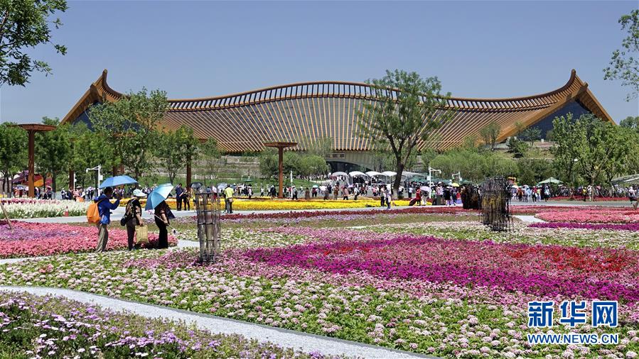 游客在北京世園會中國館前游覽(5月23日攝)。新華社記者李欣攝