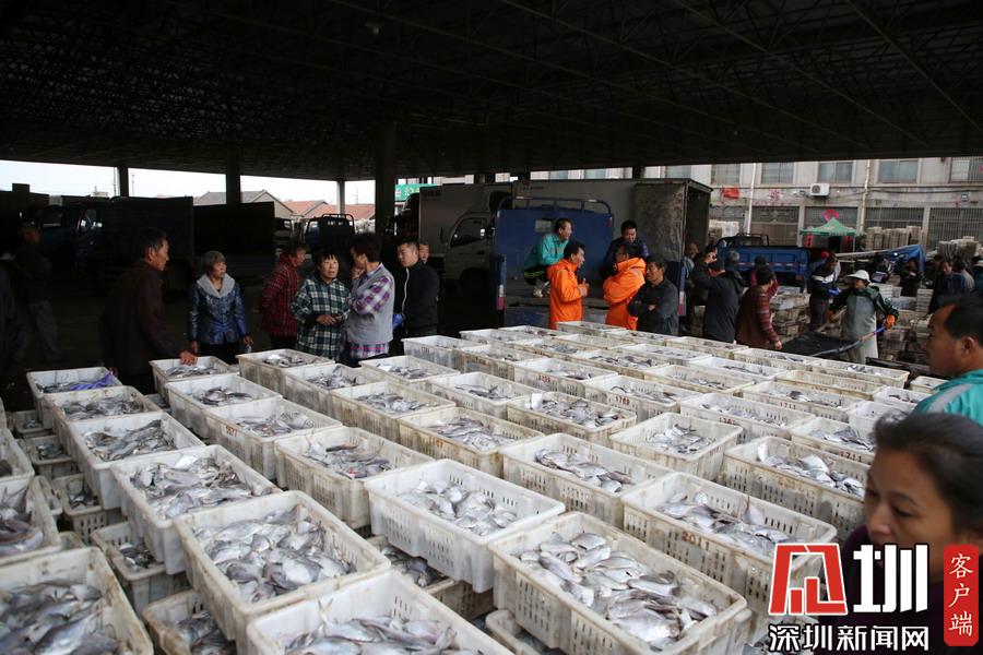 一筐筐的刀魚、鯧魚、鲅魚,很快被運(yùn)輸?shù)脚R近的興海門海鮮批發(fā)市場,市場里人頭攢動(dòng)、熙熙攘攘,就像趕年集一般,一派購銷兩旺的景象。