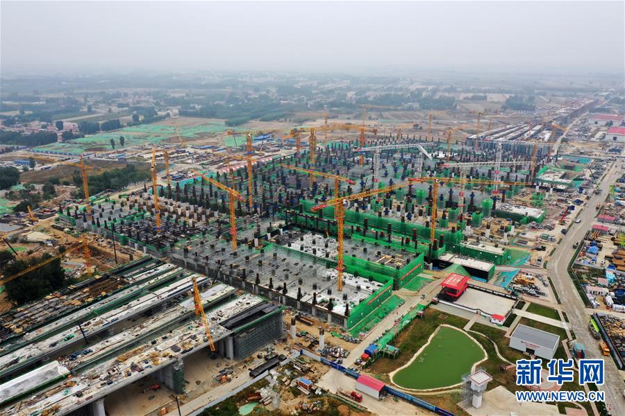 建設(shè)中的雄安站(10月10日無人機(jī)拍攝)。