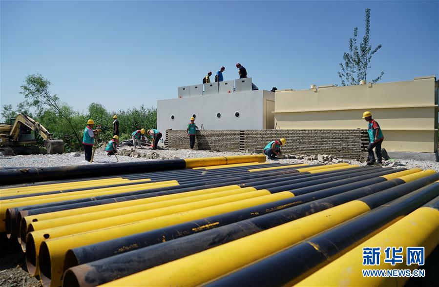 這是8月31日拍攝的白洋淀望月島污水凈化工程施工現(xiàn)場。新華社記者牟宇攝