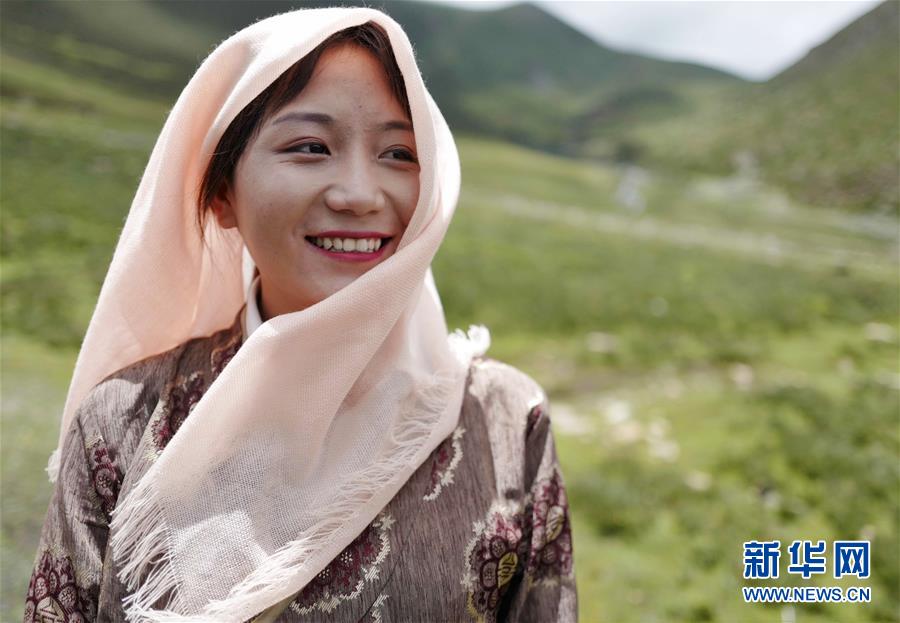 堅(jiān)熱益西在自家牧場內(nèi)(7月13日攝)。新華社記者普布扎西攝