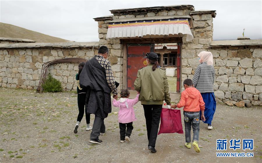 堅(jiān)熱益西在牧區(qū)和牧民聊天(7月13日攝)。新華社記者普布扎西攝