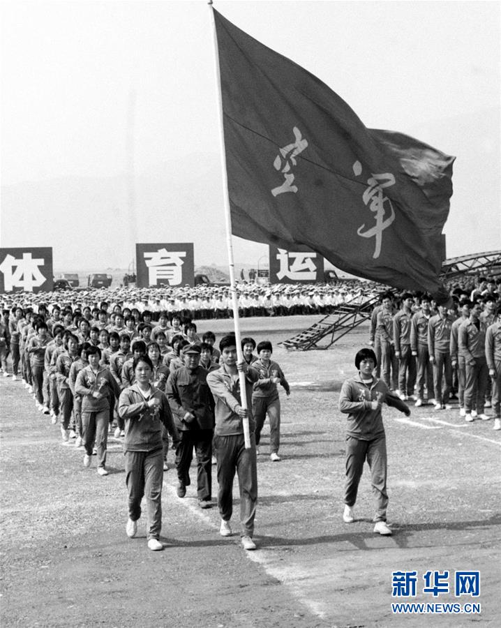 中國(guó)人民解放軍第四屆體育運(yùn)動(dòng)大會(huì)于1979年5月13日在北京隆重開(kāi)幕。這是空軍運(yùn)動(dòng)員在第四屆全軍運(yùn)動(dòng)會(huì)開(kāi)幕式上。新華社記者吳森輝攝