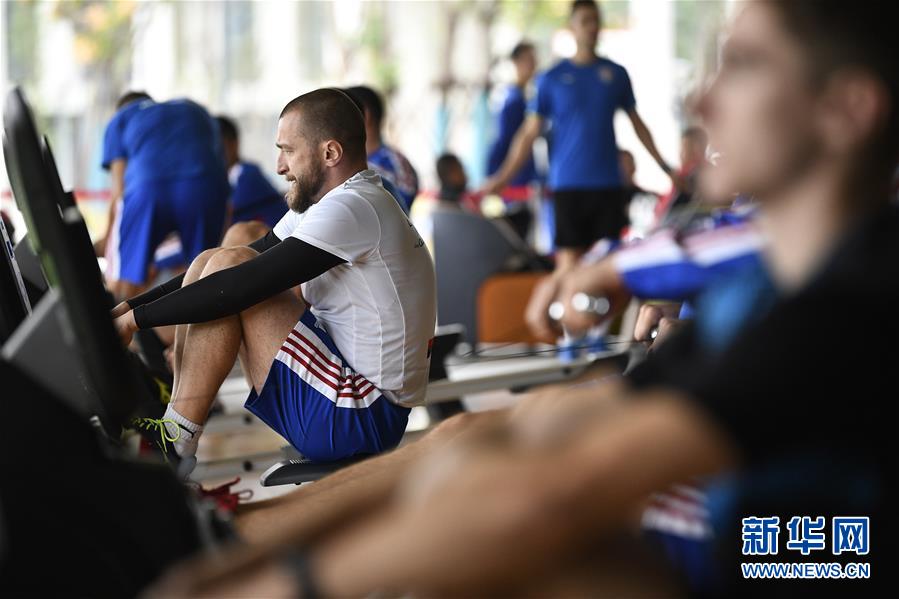 10月16日,運(yùn)動(dòng)員在軍運(yùn)村內(nèi)的健身中心鍛煉。新華社記者王鵬攝