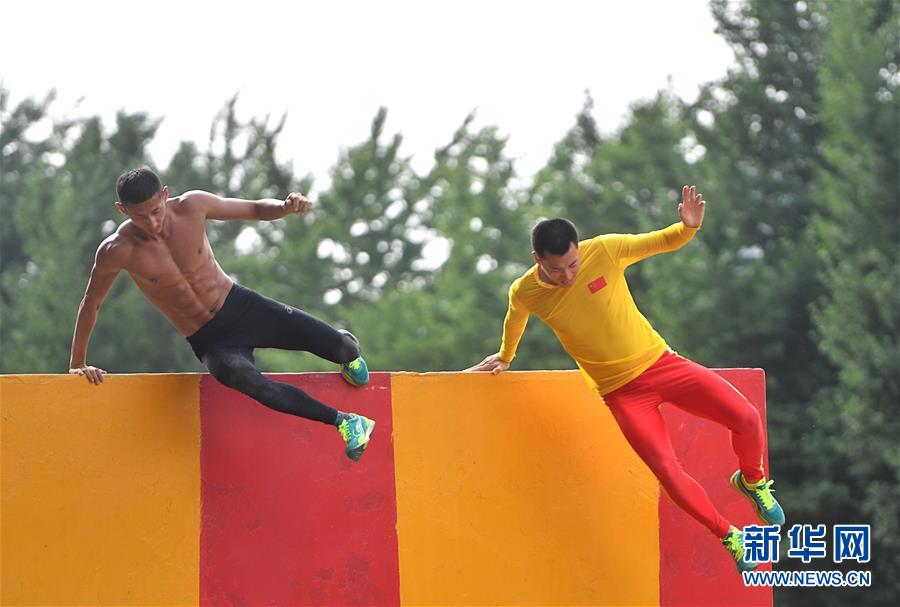 2019年8月5日,八一空軍五項(xiàng)隊(duì)隊(duì)員王佳在進(jìn)行障礙跑訓(xùn)練。新華社記者程敏攝