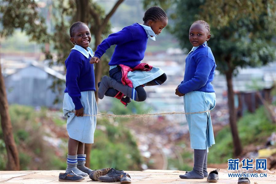 10月16日,在肯尼亞內(nèi)羅畢基貝拉貧民窟,孩子們在放學(xué)后玩耍。新華社記者王騰攝