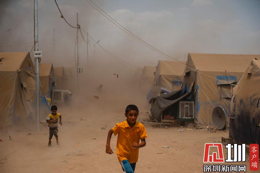 當(dāng)?shù)貢r(shí)間2014年7月23日,伊拉克Khazir,Khazir難民營的孩子們在沙塵暴中奔跑。逃離“伊拉克和黎凡特伊斯蘭國”(ISIS)極端組織的伊拉克人在Khazir難民營里避難。這所難民營建于6月10日,目前有700人住在這里,其中大多數(shù)是穆斯林。