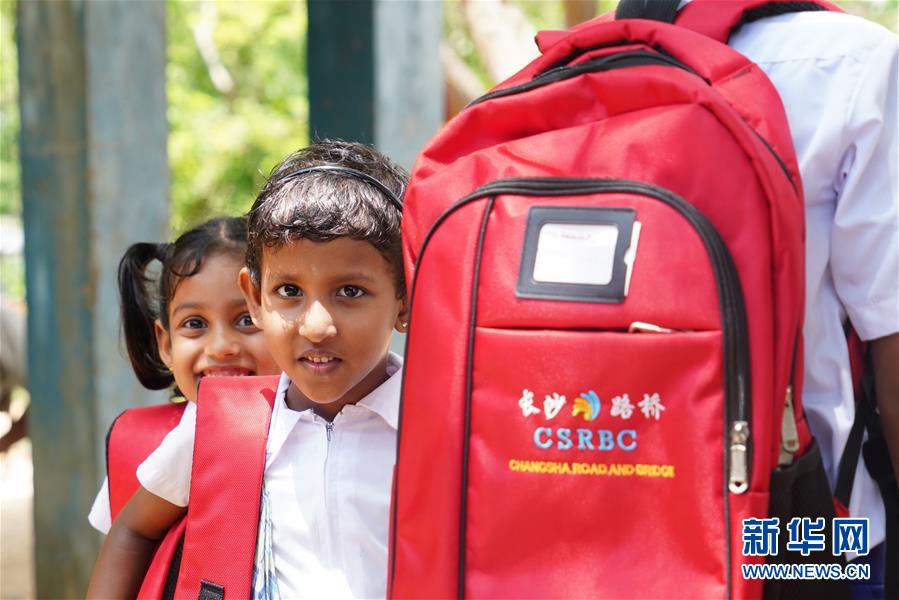 10月18日,在斯里蘭卡漢班托塔地區(qū)的提薩普拉學校,幾名學生領(lǐng)到中國企業(yè)贊助的書包。 18日,斯里蘭卡南方省漢班托塔地區(qū)的提薩普拉學校洋溢著一派歡天喜地的氣氛,全校師生及家長共同慶祝由中國招商局慈善基金會援建的兩層新教學樓正式落成,許多學生當天還領(lǐng)到了中國企業(yè)贊助的嶄新書包。附近地區(qū)的其他學校校長和村民也紛紛趕來參加儀式。 新華社記者唐璐攝