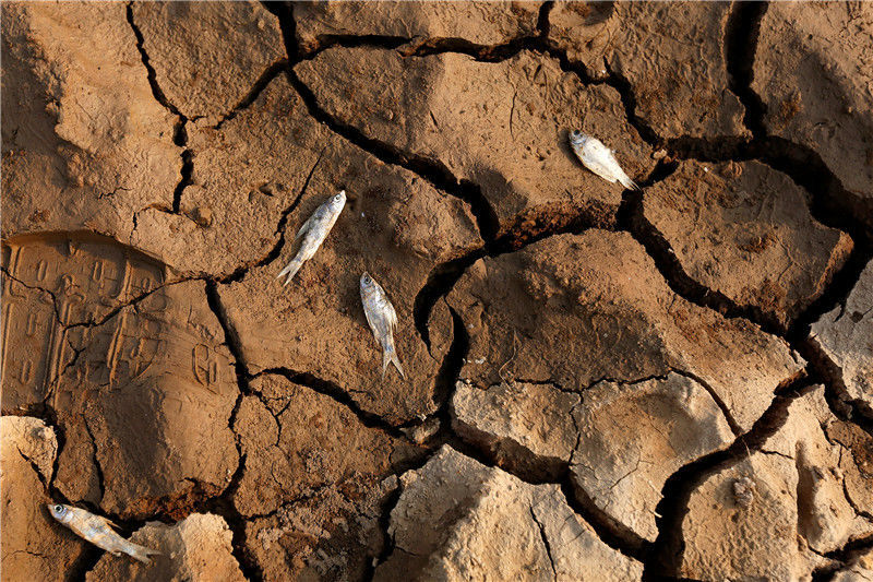 當(dāng)?shù)貢r(shí)間2016年5月13日,柬埔寨甘丹省,受厄爾尼諾現(xiàn)象影響,當(dāng)?shù)卦庥龈珊堤鞖?,池塘干涸開裂。
