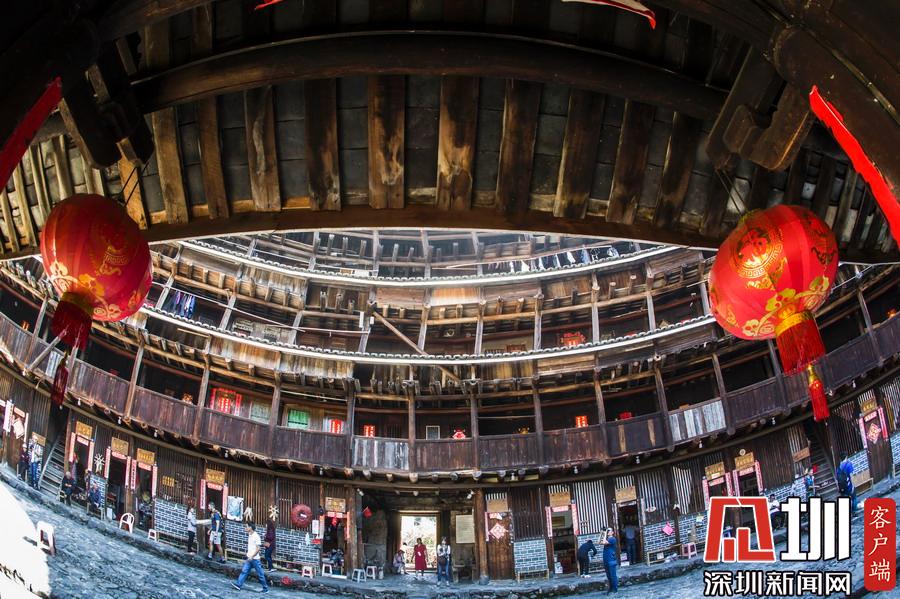 承啟樓高四層,四圈上下400余間,“民居”系列郵票中福建民居就以承啟樓為圖案,進(jìn)入土樓可以欣賞到典型的土家風(fēng)情。李酮攝