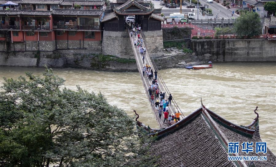 這是大渡河上的瀘定橋(6月27日攝)。 金秋十月,中國最美景觀大道——川藏線上,中外游客絡(luò)繹不絕。途經(jīng)雅康高速上身披“紅妝”的瀘定大渡河大橋,人們無不為其雄壯所震撼。環(huán)其周圍,瀘定大渡河上還有瀘定橋、瀘定大渡河吊橋等大橋巍然佇立,數(shù)橋并跨交相輝映,見證了中國橋梁建設(shè)的光榮與夢想。 新華社記者 江宏景 攝