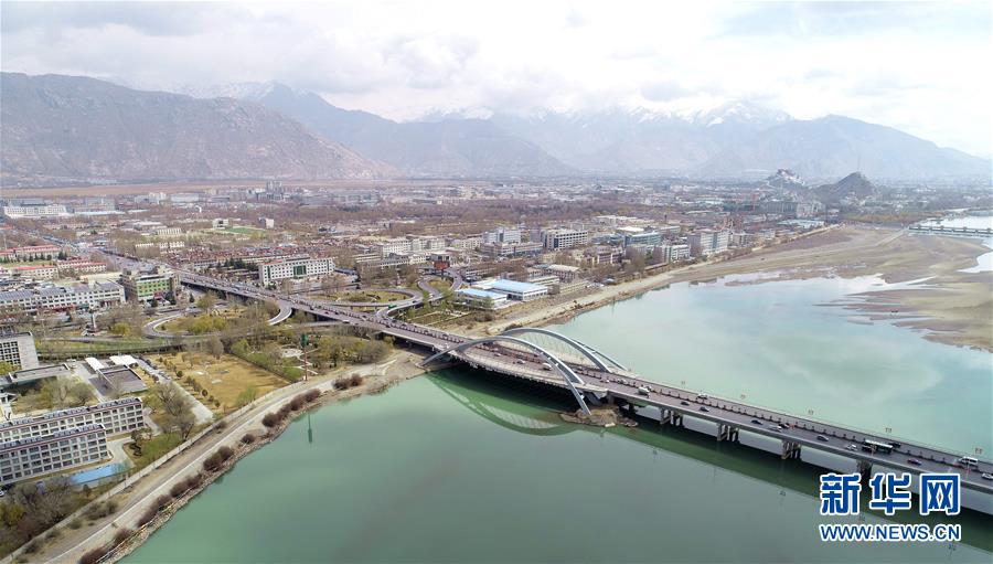 這是橫跨在拉薩河上的拉薩市區(qū)公路(4月3日無人機拍攝)。 新華社記者 晉美多吉 攝