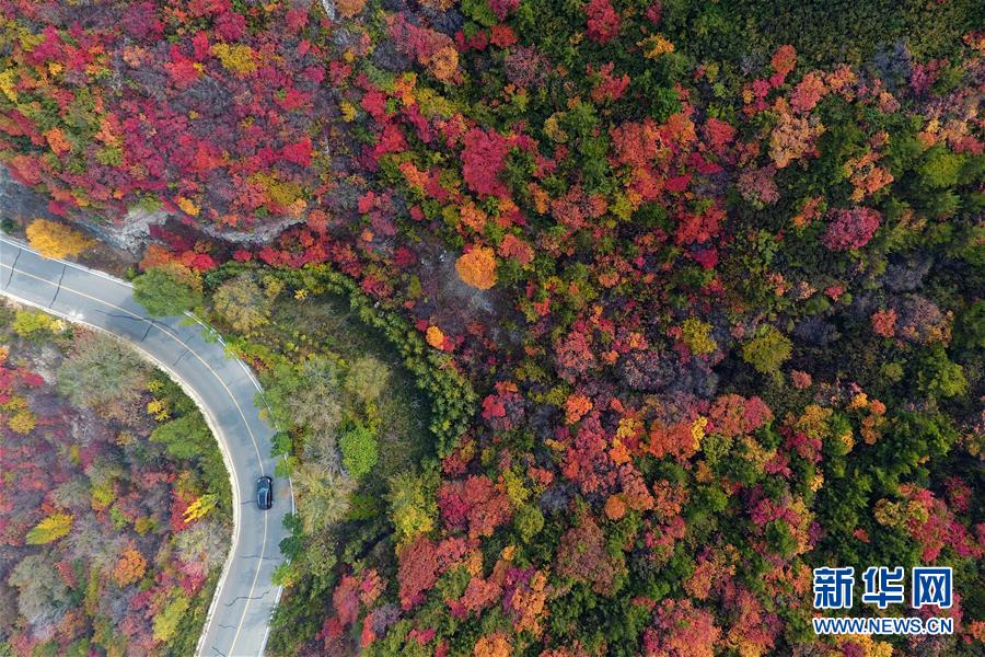 車輛行駛在山西省太原市玉泉山盤山公路上(10月22日無(wú)人機(jī)拍攝)。