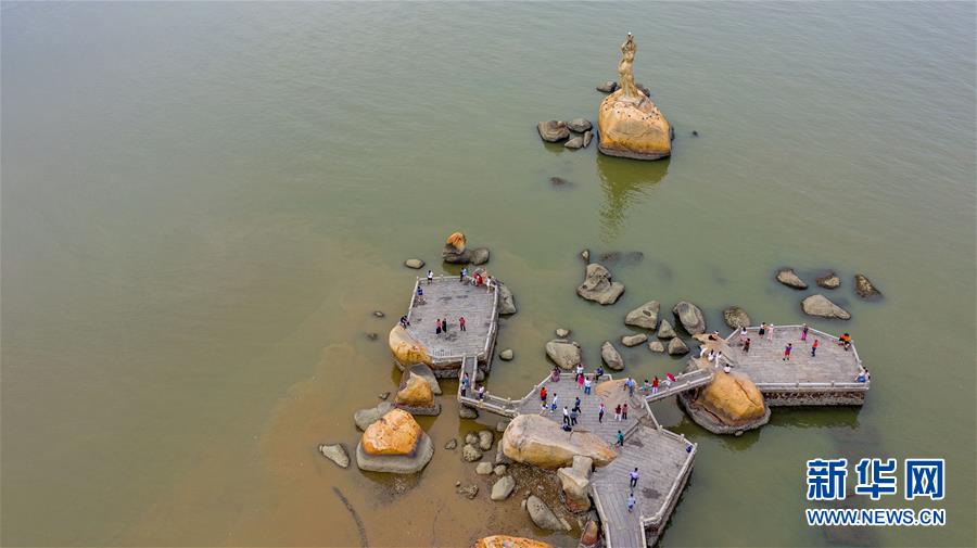 10月24日下午,游客在珠海標(biāo)志性景觀——珠海漁女附近游玩。2018年10月23日,港珠澳大橋正式開通。新華社記者張金加攝