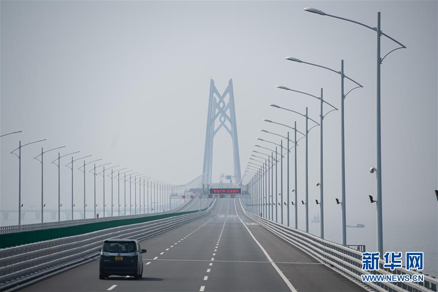 10月24日下午,車輛駛向港珠澳大橋青州航道橋。2018年10月23日,港珠澳大橋正式開通。新華社記者張金加攝