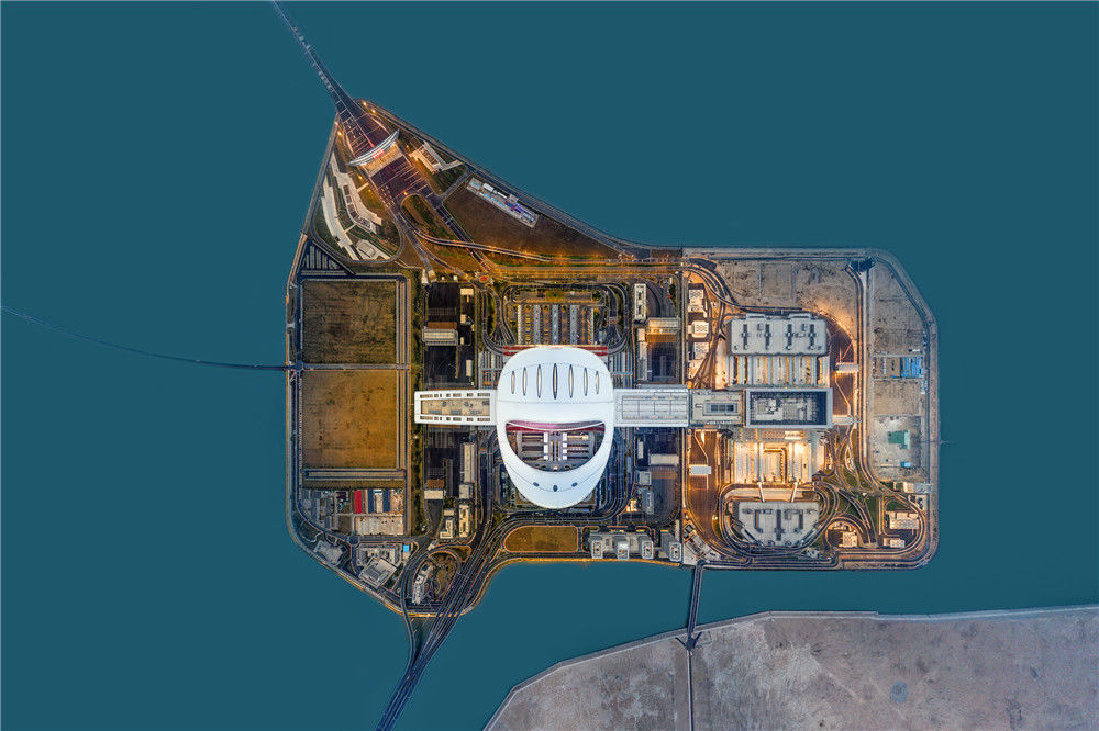 2019年1月6日,廣東珠海,航拍港珠澳大橋人工島夜景美如畫(huà)。ainyone/視覺(jué)中國(guó)
