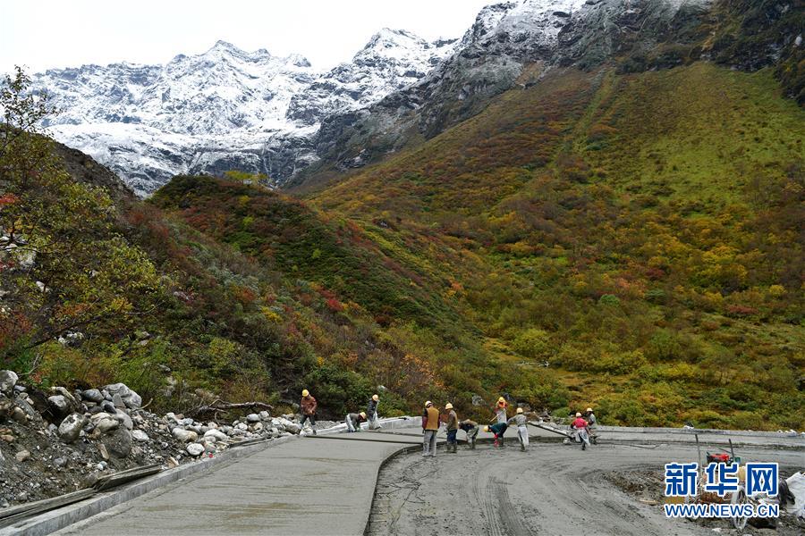 工人們在派墨農(nóng)村公路施工現(xiàn)場作業(yè)(10月24日攝)。新華社記者李鑫攝