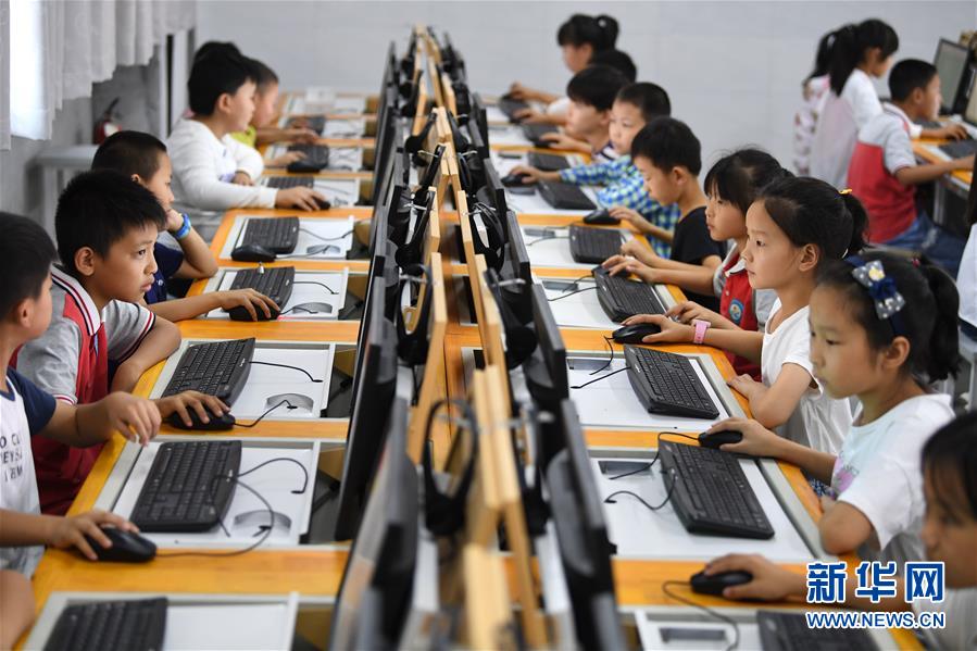 9月3日,金寨縣希望小學(xué)南校區(qū)學(xué)生在上計(jì)算機(jī)課。新華社記者張端攝