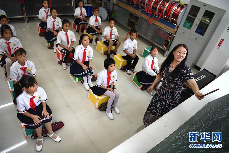 9月3日,金寨縣希望小學學生在上音樂課。新華社記者劉軍喜攝