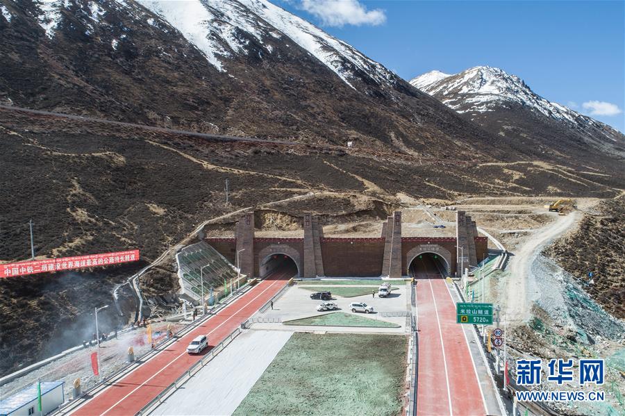 這是建成通車的米拉山隧道(4月26日無人機拍攝)。新華社記者李鑫攝