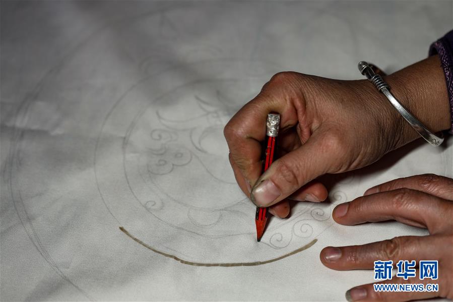 10月28日,楊芳在用蜂蠟繪制蠟染圖案。新華社記者 歐東衢 攝