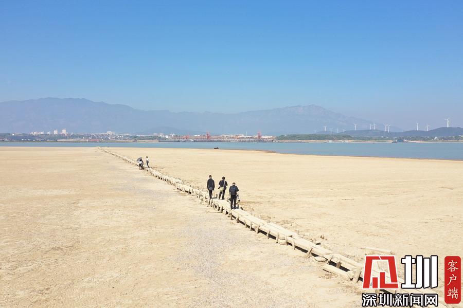 江西九江,隨著水位持續(xù)下降,豐水期浸泡在鄱陽湖底被譽(yù)為“中國最長的湖中古木石橋”露出水面。