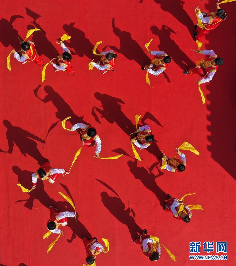 11月2日,南京仙林街道仙林新村社區(qū)居民腰鼓隊在千家宴上表演助興(無人機(jī)拍攝)。 新華社記者 季春鵬 攝