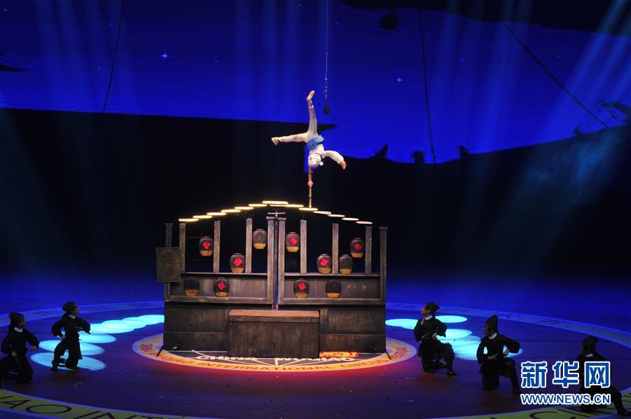 11月3日,來自埃塞俄比亞的演員在表演《蹬技》。 當日,第十七屆中國吳橋國際雜技藝術(shù)節(jié)滄州會場世界雜技精品惠民展演在河北省滄州市體育館舉行。中國吳橋國際雜技藝術(shù)節(jié)創(chuàng)辦于1987年,每兩年舉辦一屆,是我國雜技藝術(shù)領(lǐng)域舉辦歷史最長、規(guī)模最大、影響最廣的國家級藝術(shù)賽事和文化節(jié)慶活動。 新華社記者 牟宇 攝