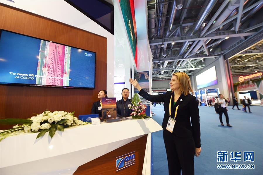 這是在第二屆進(jìn)博會(huì)上拍攝的希臘比雷埃夫斯港展臺(tái)(11月8日攝)。新華社記者尹炣攝